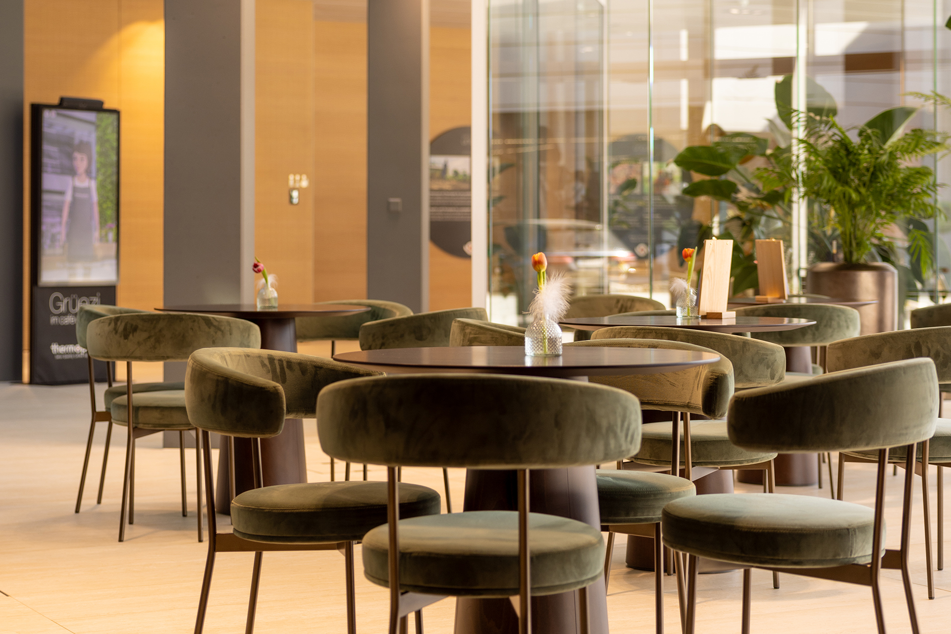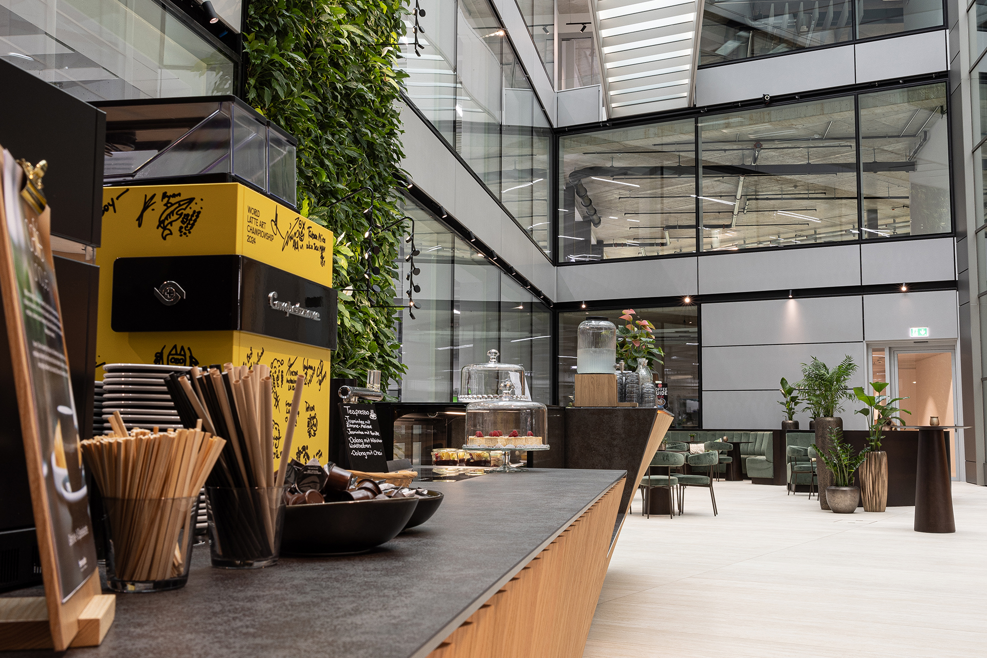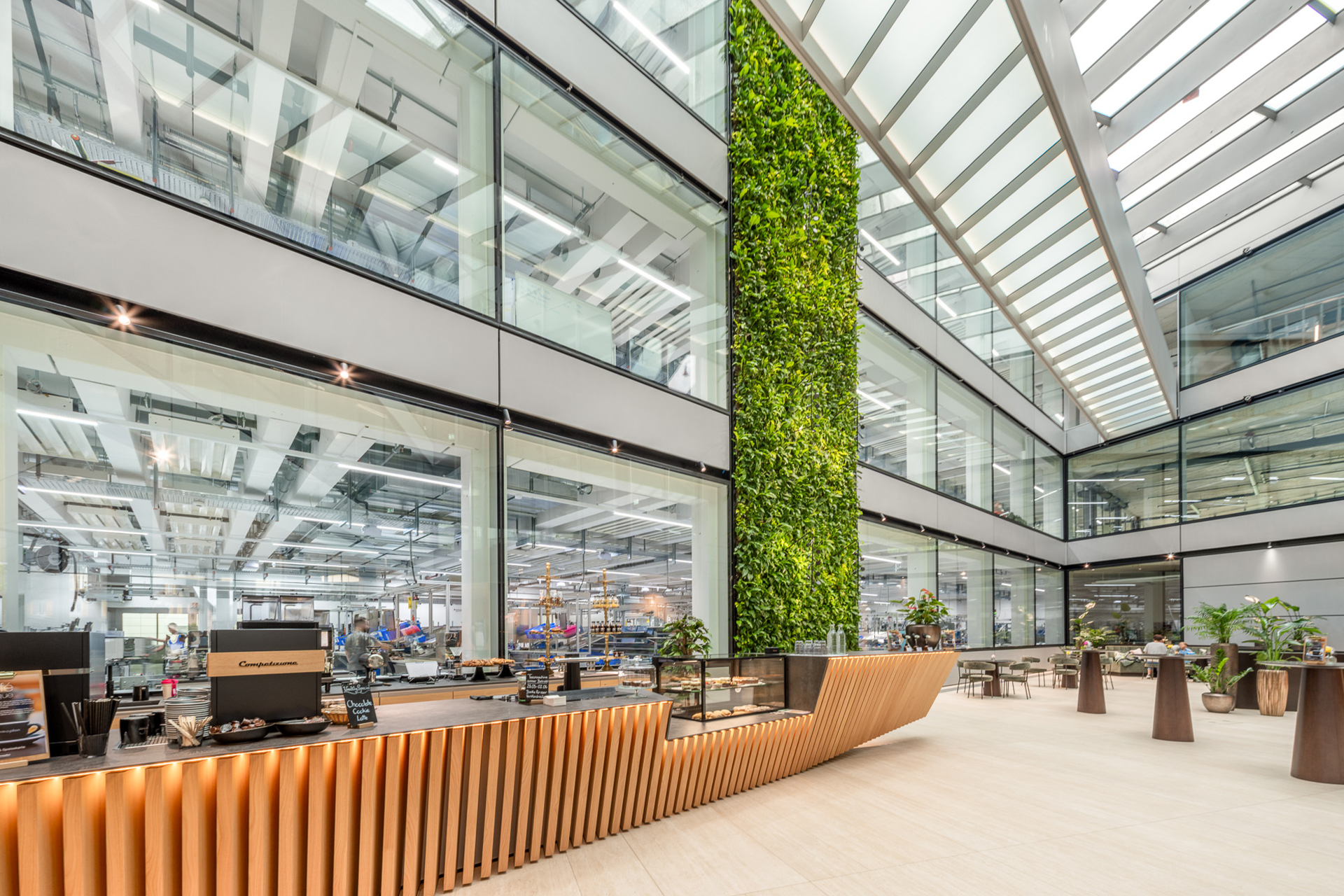 every detail has been carefully considered to elevate the everyday experience. The bar and counter are fully custom-built, featuring chestnut wood lamellae, bespoke varnishes aligned with the company’s corporate identity, and tailor-made display and refrigeration units.