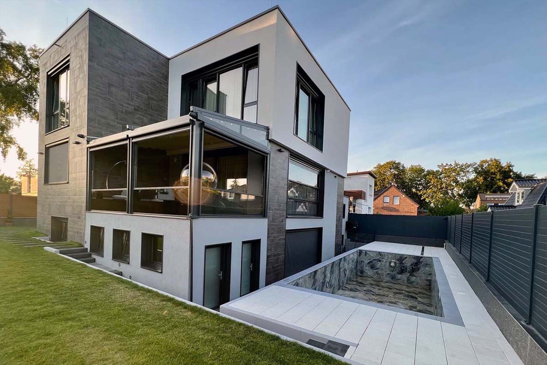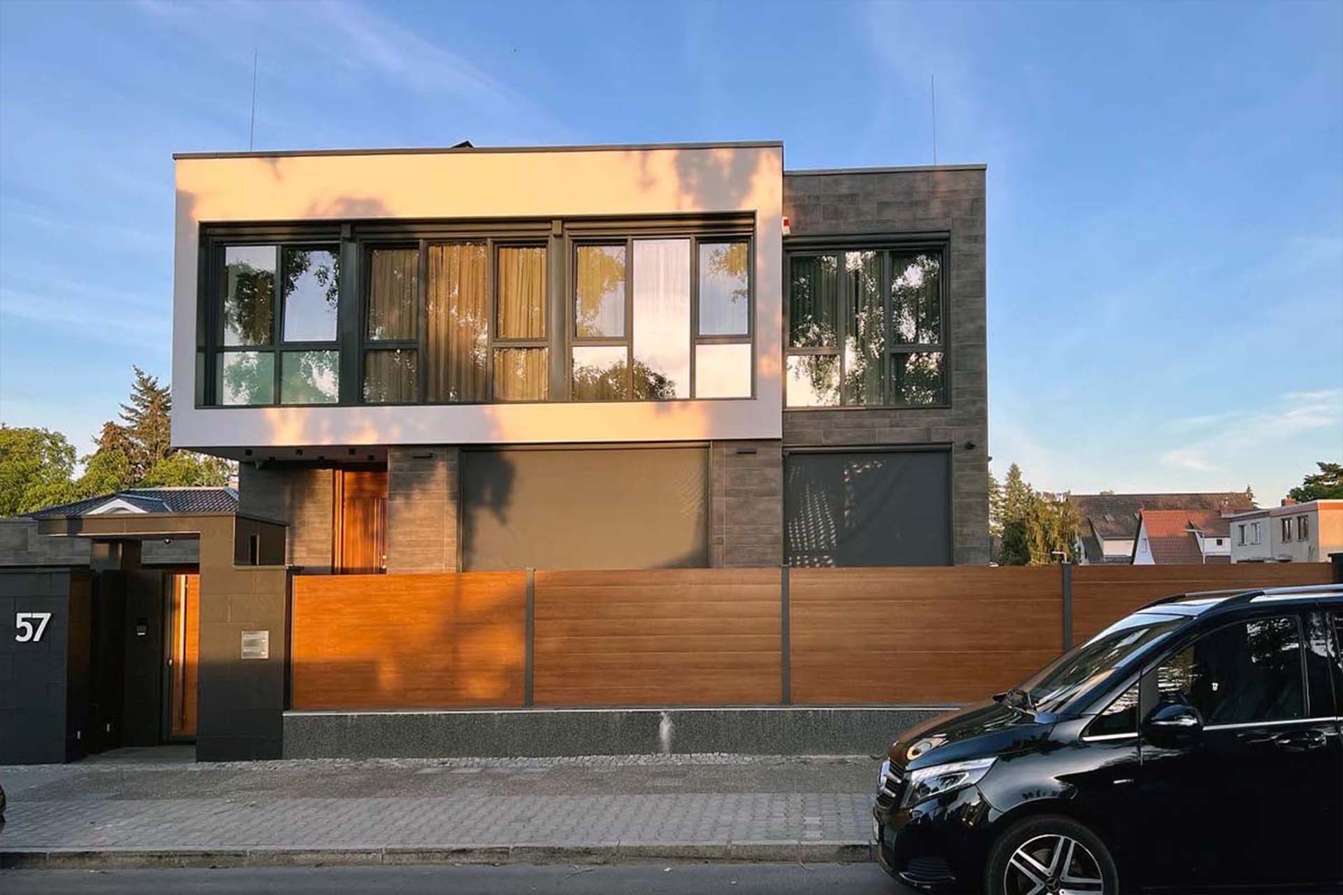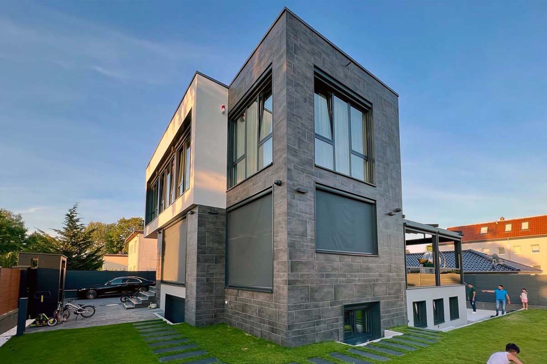 Openings are positioned with architectural discipline. Window size, depth, and alignment respond to internal use, orientation, and privacy requirements rather than symmetry. Deep reveals and integrated shading devices give the facade thickness, emphasizing the building as a solid, inhabitable mass rather than a thin envelope.