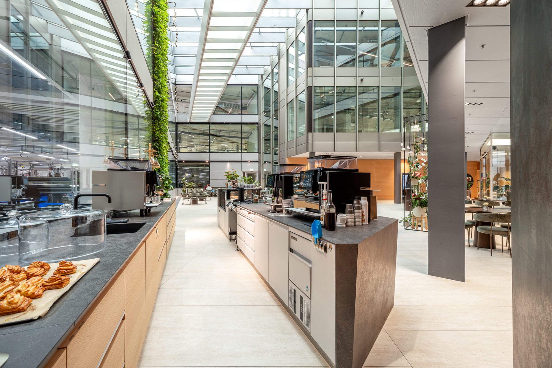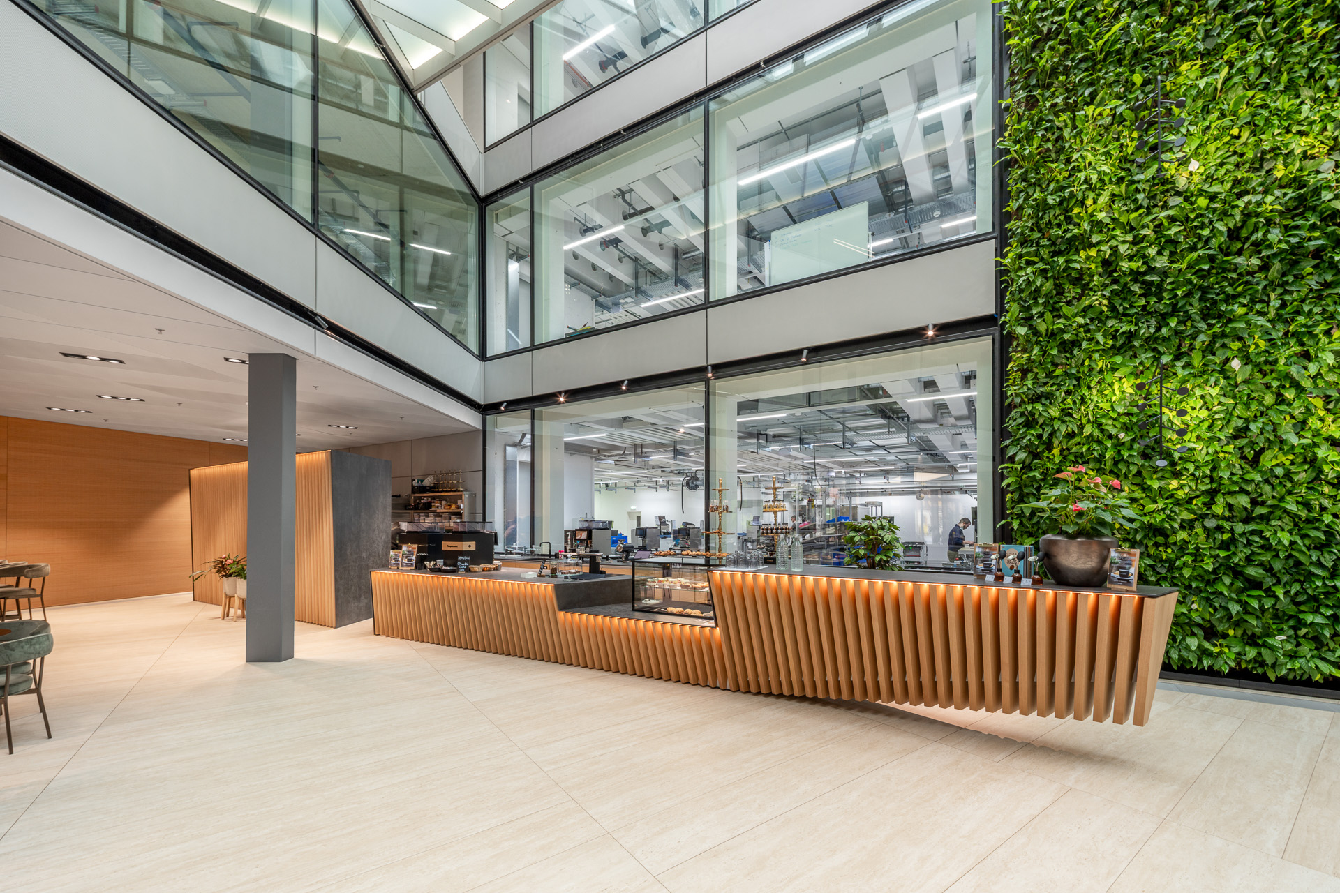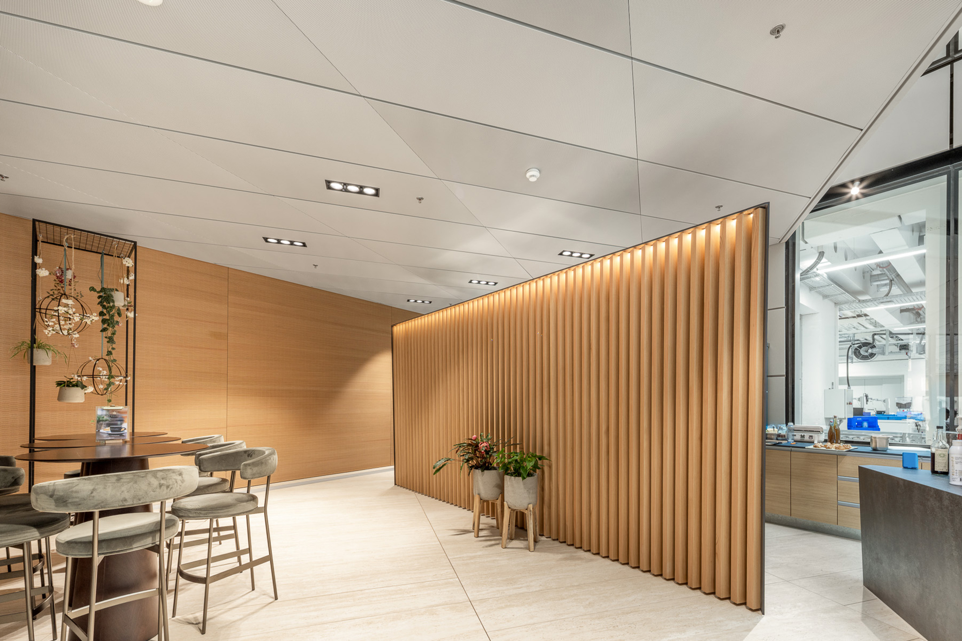 This is far beyond a typical staff canteen—it is a space where craftsmanship, materiality, and functionality converge. The interplay of textures, light, and form creates an environment that delights the senses, fosters a sense of pride and wellbeing among employees, and leaves a lasting impression on visitors.