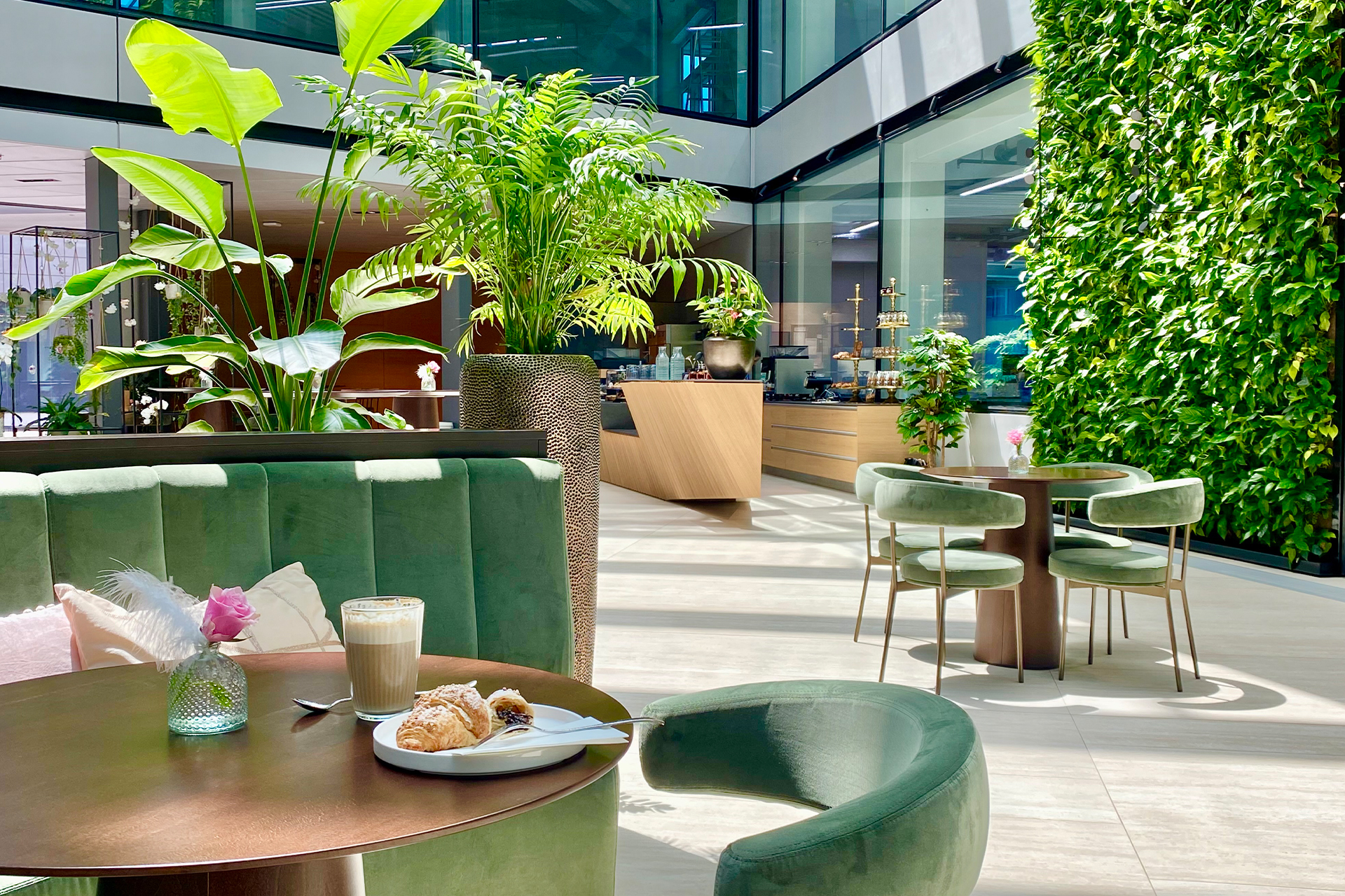 every detail has been carefully considered to elevate the everyday experience. The bar and counter are fully custom-built, featuring chestnut wood lamellae, bespoke varnishes aligned with the company’s corporate identity, and tailor-made display and refrigeration units.