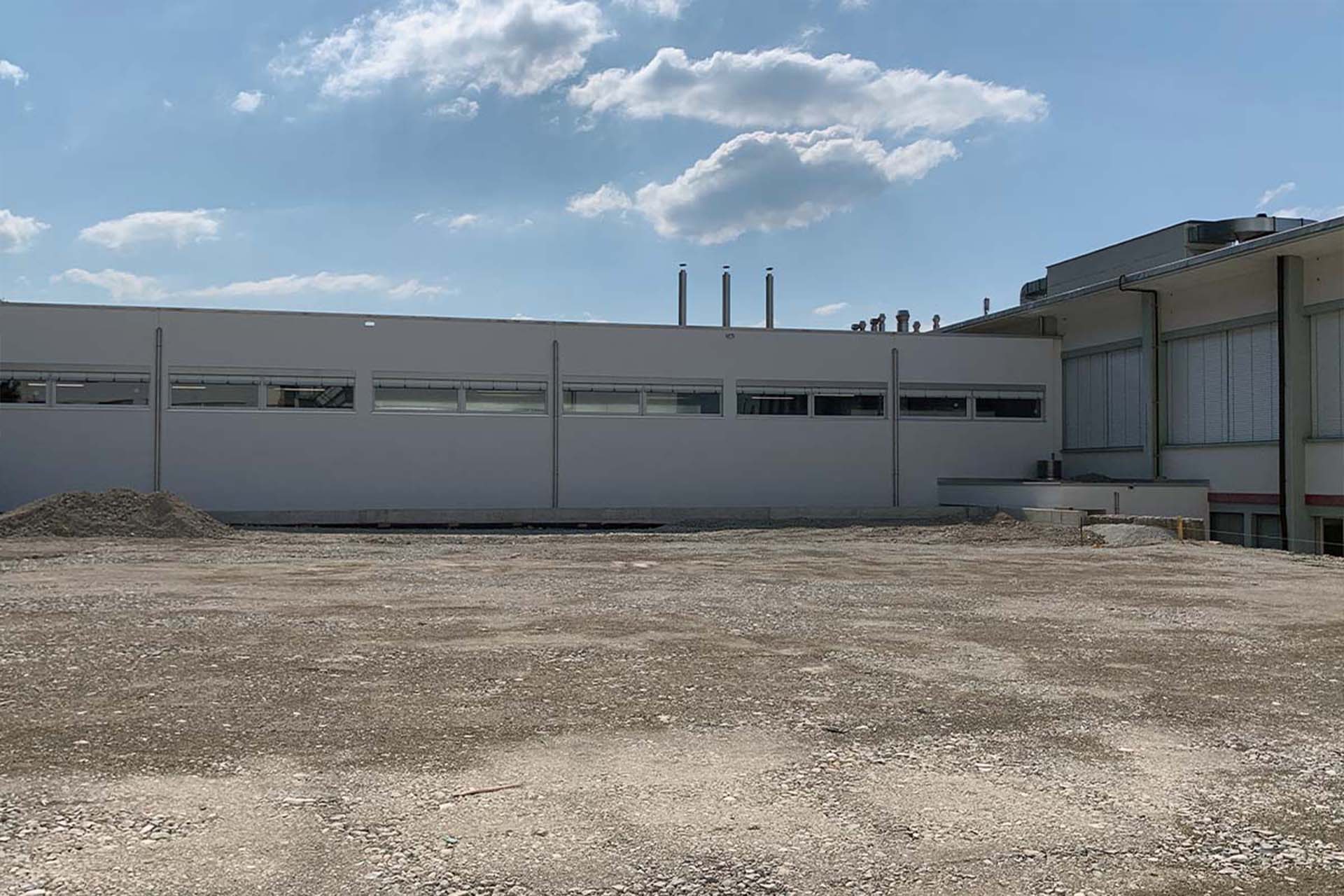 The expansion integrates seamlessly into the surrounding industrial fabric. Low building heights and horizontal volumes maintain coherence with the existing site and avoid visual dominance. The result is a calm, clearly structured industrial campus—internally optimized, externally understated.