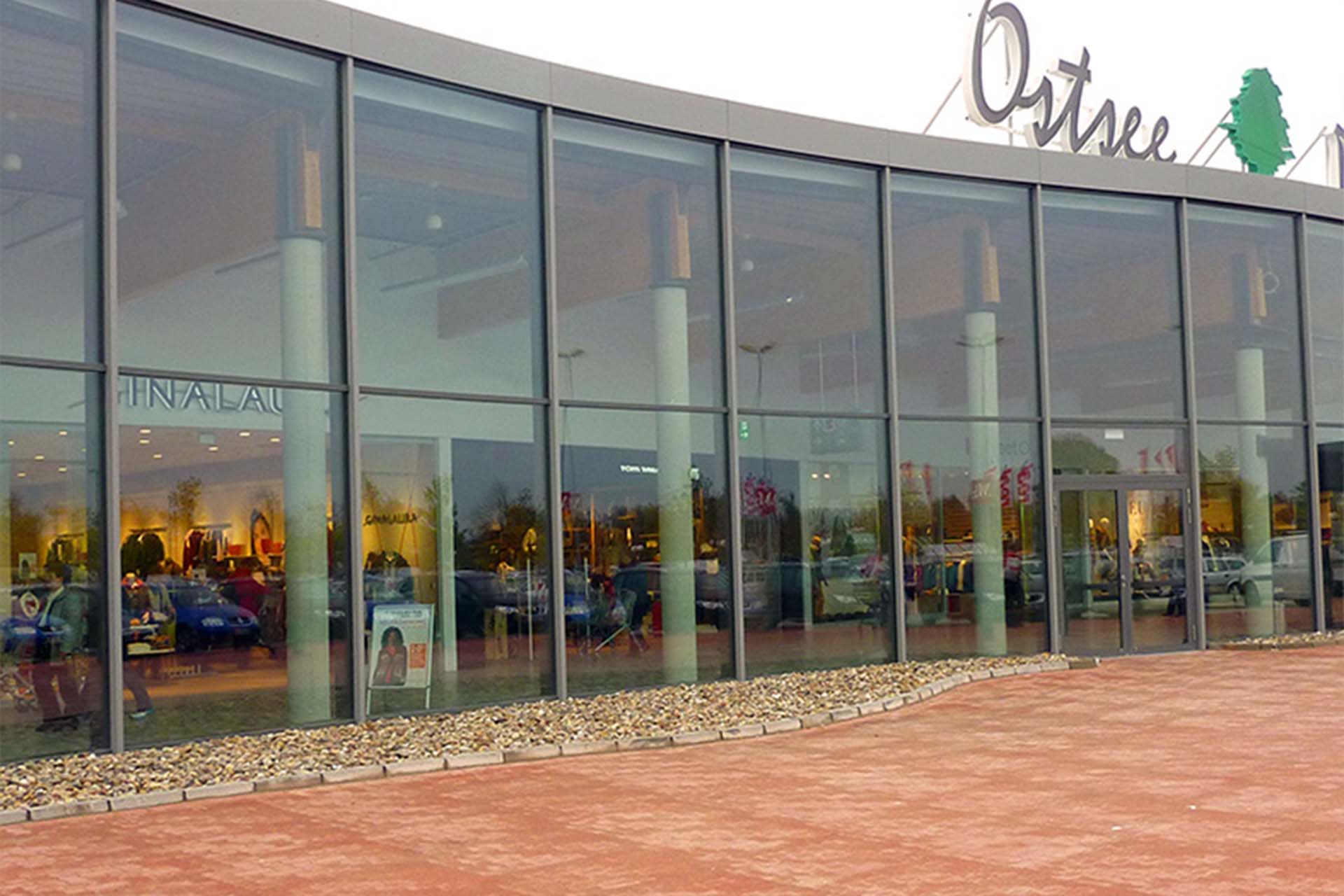 Subtle maritime-inspired design elements—curved facade rhythms, wave-like projections, and restrained material articulation—tie the architecture to the regional context of the Baltic Sea, providing a sense of place without compromising operational efficiency. Behind this aesthetic lies a carefully considered operational pragmatism: barrier-free circulation, modular retail units, service access discreetly located at the rear, and parking directly adjacent to entrances ensure both commercial viability and customer convenience.