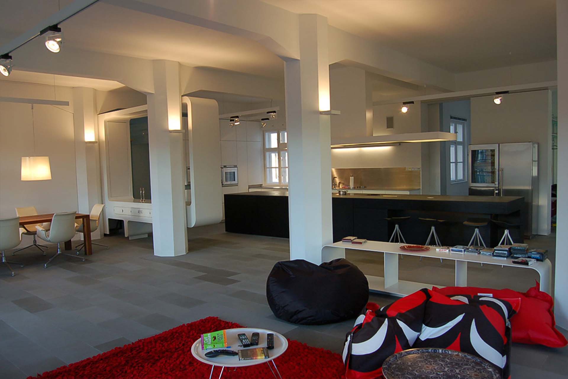 The loft is set within the shell of a historic chocolate factory, where raw industrial elements—exposed brick, steel beams, and soaring ceilings—meet contemporary design. The space tells a story of craftsmanship and history, transformed into a modern, light-filled home that celebrates its industrial past while offering all the comforts of today.